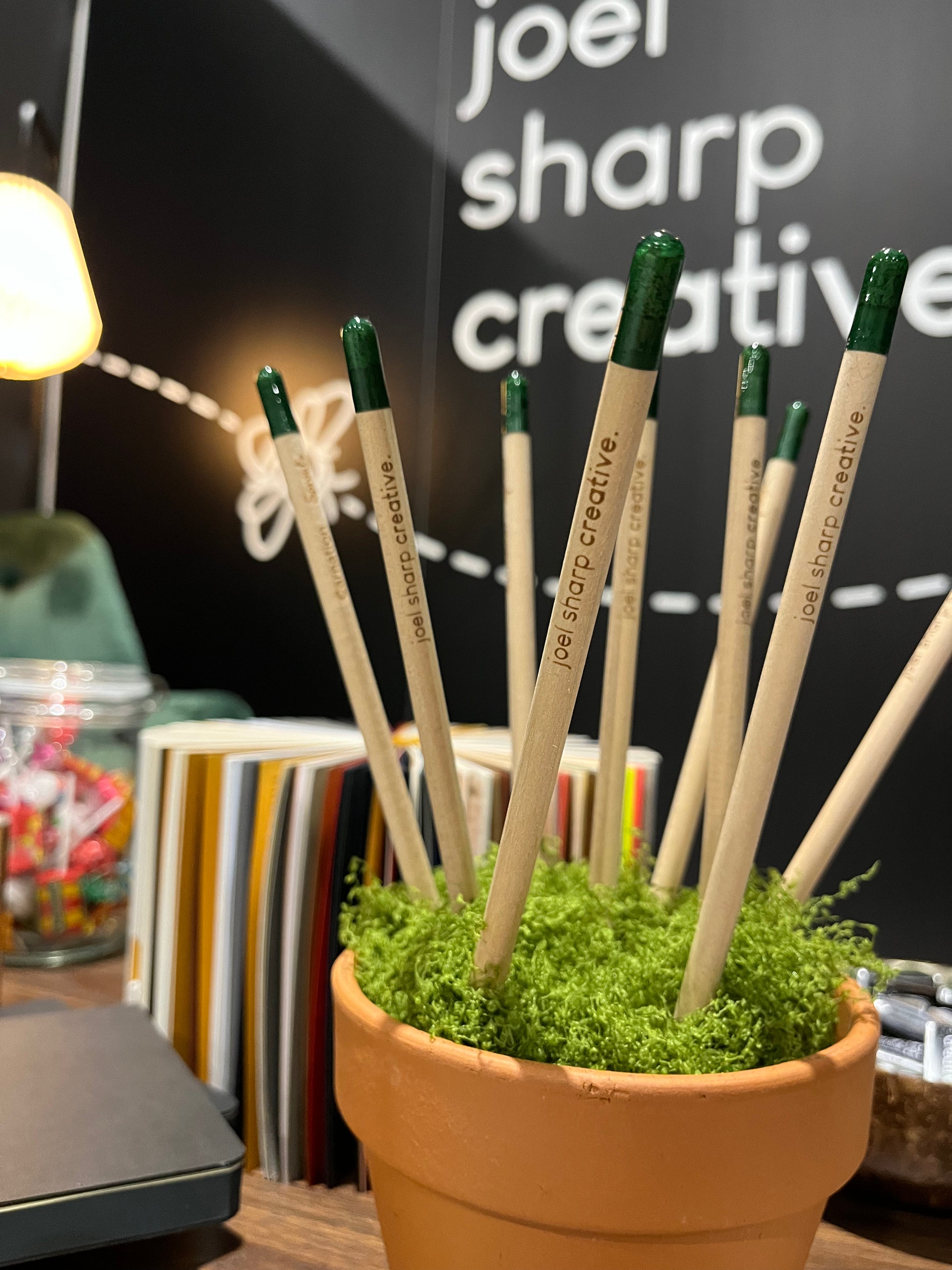 Sprout Plantable Pencils, laser engraved with our sister company’s logo, Joel Sharp Creative, offer a unique way to write and grow. These eco-friendly pencils let you create something beautiful and sustainable long after they've been used for writing.